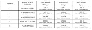 À cet effet, nous vous demandons de transmettre votre avis d’imposition dans une enveloppe fermée au nom de l’enfant, portant la mention CONFIDENTIEL, à l’attention du chef d’établissement (Mme DO LIVRAMENTO pour le 1er degré et M. FAIVRE pour le second degré).